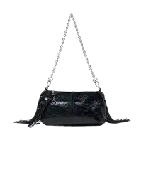 The iconic Miss M bag in a pouch version that is both chic and practical. Crafted in metallic cracked leather, it features a removable silver chain strap for shoulder or hand carry.