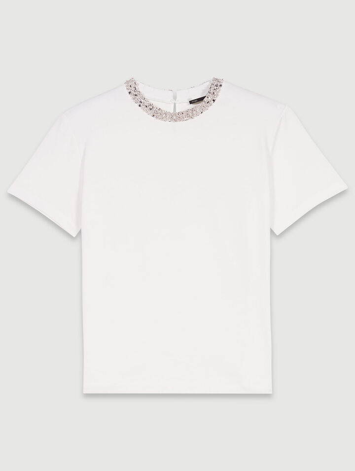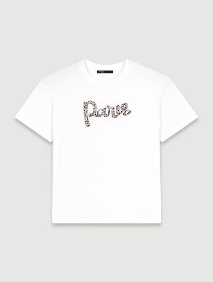 Maje invites you to discover its collection of T-shirts, ranging from those made of organic cotton to those featuring plain colours, prints, rhinestones, cool messages, round necks and V-necks. With or without sleeves, they go great with trousers, jeans, skirts or shorts for a relaxed look, or with a jacket or blazer for a more formal look.
